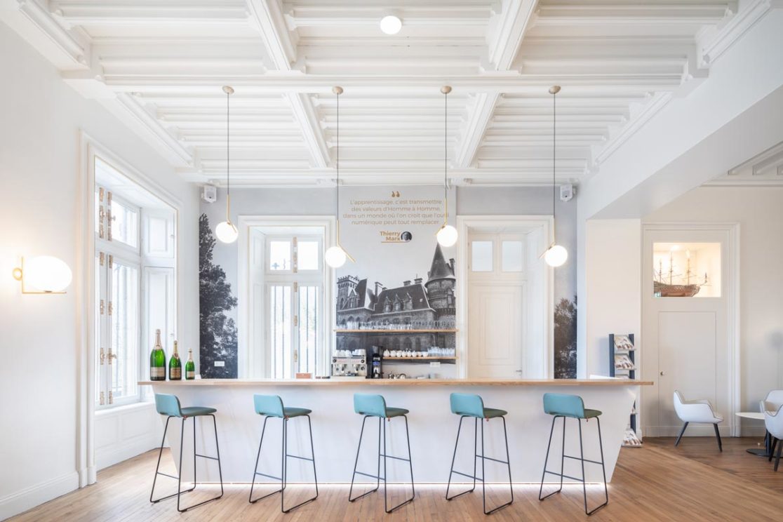 - Restructuration de l’accueil et recomposition du bar : réalisation du mobilier, choix des revêtements et des appareillages, etc. ;
