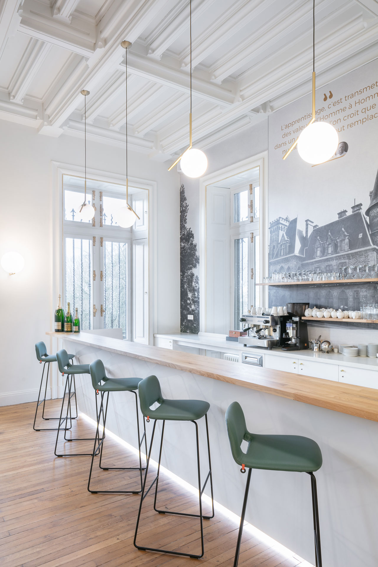 L’agence a travaillé sur le réaménagement de la salle de restauration d’un lycée proposant des formations en cuisine et restauration. Cet espace permet aux élèves d’étudier et d’apprendre leur métier en conditions réelles.