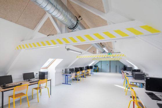 Les cours de récréation ont ainsi été réaménagées et les classes repensées. Le programme d’origine comprenait une extension de 300 m2, mais dans une volonté d’optimisation des espaces et des coûts, seuls 60 m2 d’extension ont été réalisés, tout en respectant les besoins et les usages. Pour instaurer cette économie intelligente des espaces, des échanges avec l’équipe pédagogique ont été nécessaires.