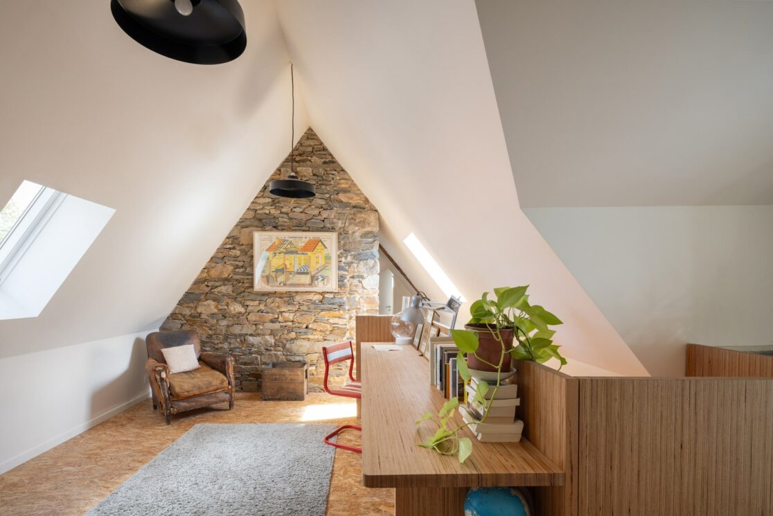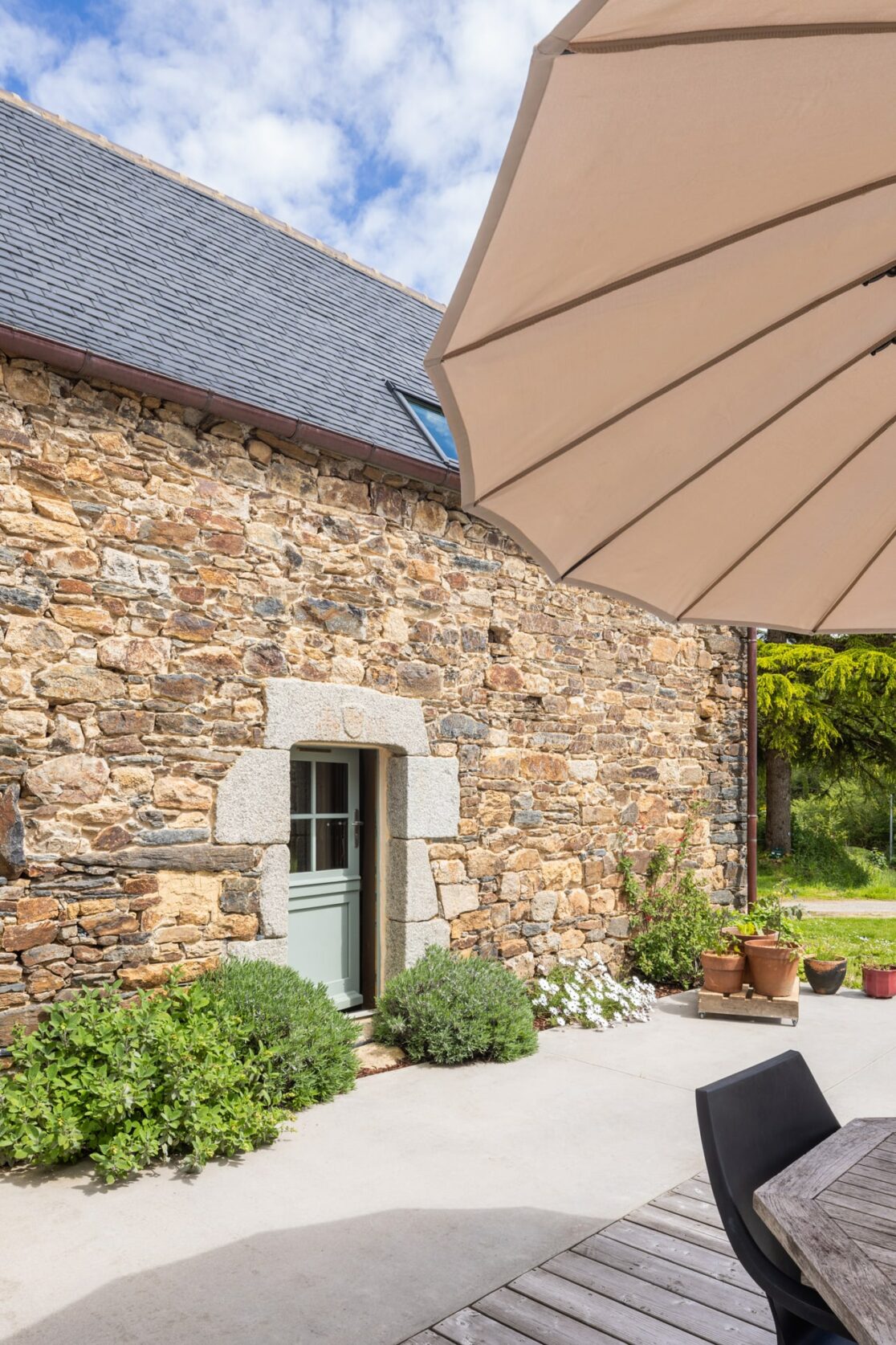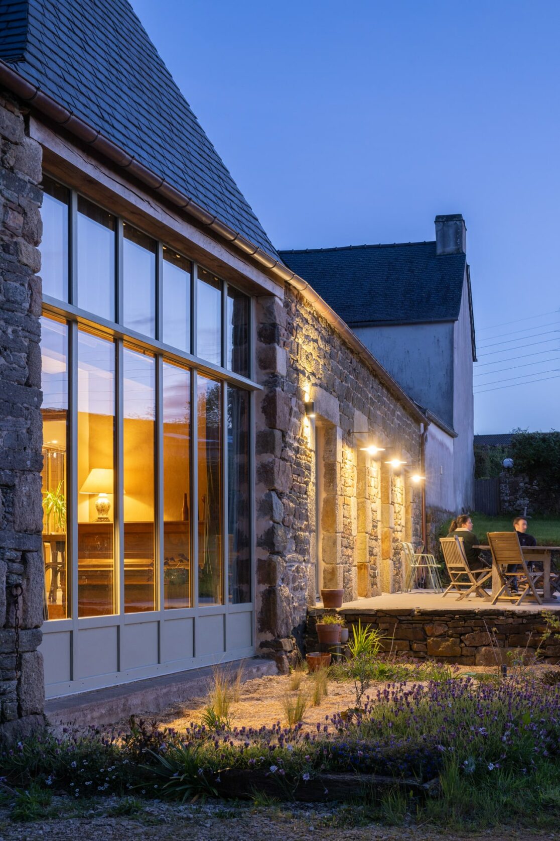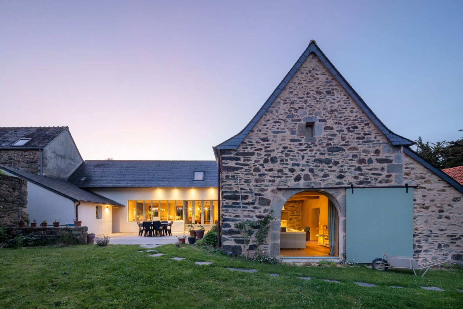 L’agence a rénové un ancien corps de ferme situé dans la campagne finistérienne. Il s’agit d’une rénovation lourde : le bâti était en ruines, tout était à refaire. Le projet consistait donc à rénover l’ensemble, articulé en U autour d’une nouvelle terrasse végétale.