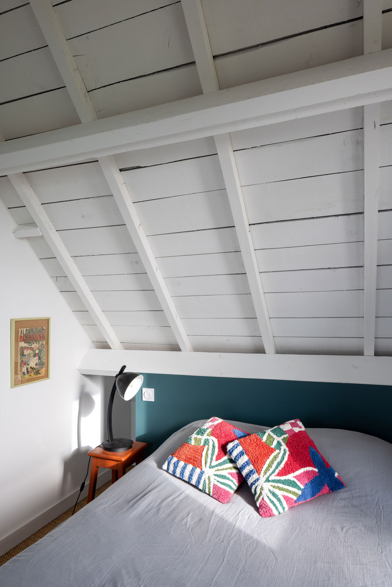 Nous avons donc réalisé une ITE (Isolation Thermique par l’Extérieur) et un sarking (une isolation extérieure sur les voliges, qui restent visibles depuis l’intérieur de la maison). Cela a permis de conserver l’intégralité des surfaces. Une isolation sous dallage complète le tout.