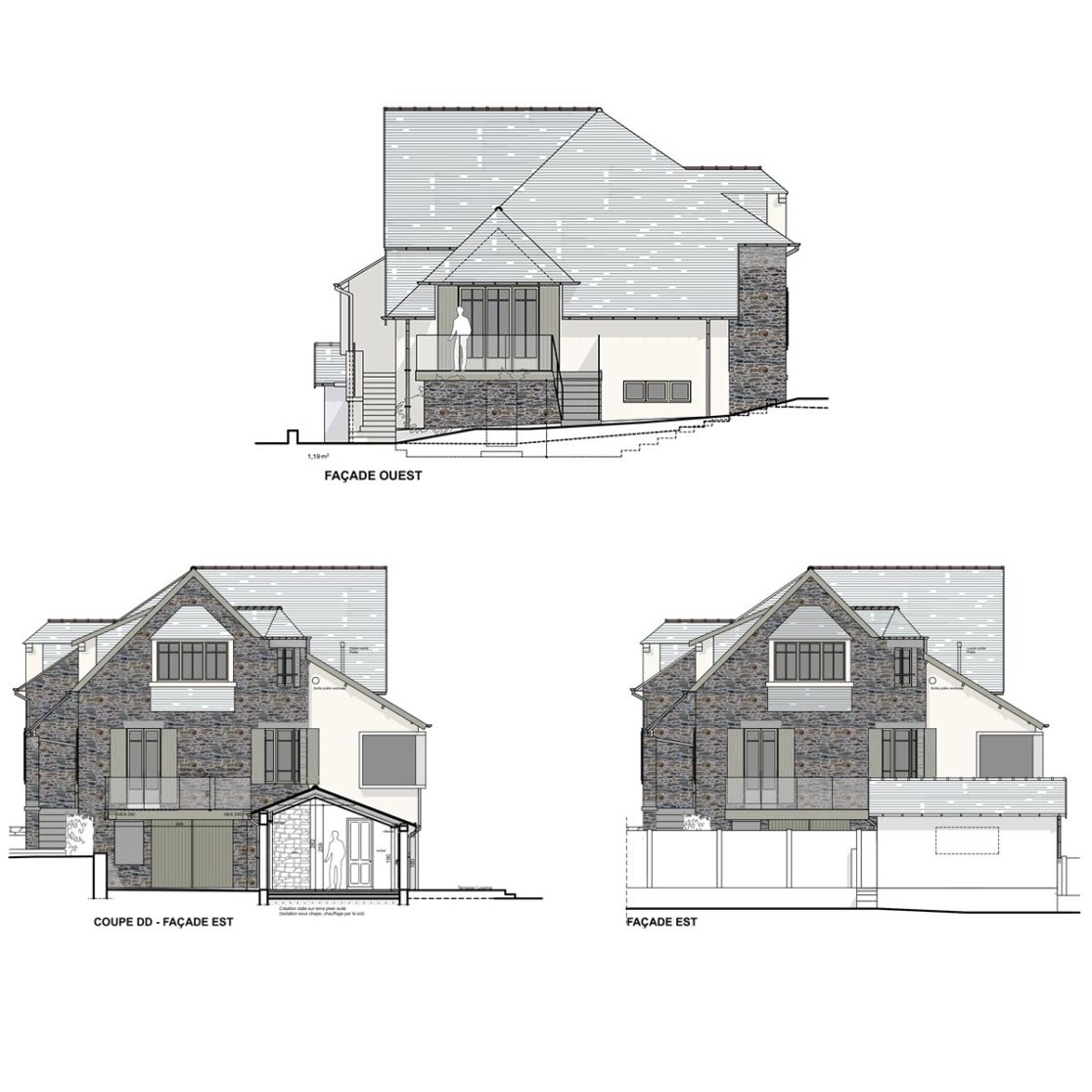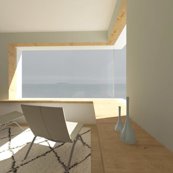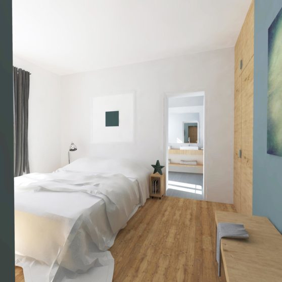 La maison est bâtie sur trois niveaux, dont un sous-sol. Au rez-de-chaussée, un espace traversant et totalement ouvert sur la mer sera créé. Un poêle viendra remplacer la cheminée, et une chambre avec salle d’eau sera aménagée. Au 1er étage, se trouvent trois chambres, une salle de bains et un WC indépendant.